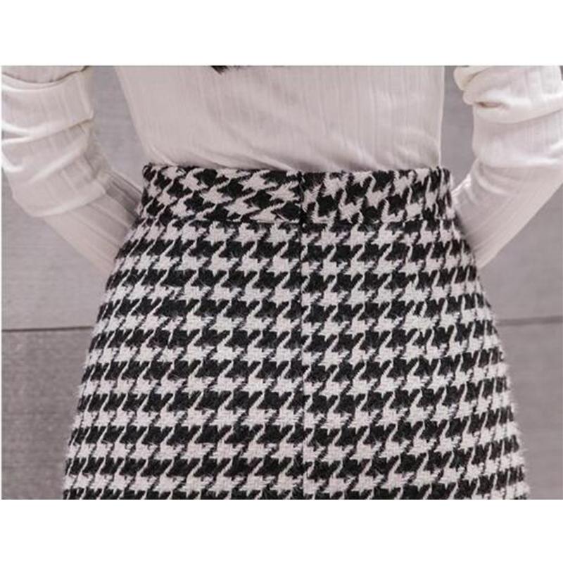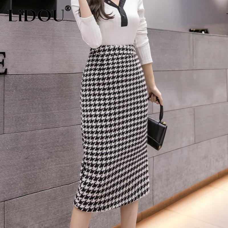 Осень Зима Элегантная Мода Принт Гусиная Лапка Юбки-карандаш Офисная Леди Высокая Талия Темперамент Все-сочетаемая Юбка Bodycon с Разрезом
