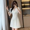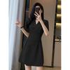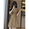 Летнее новое элегантное модное платье с талией для офисной леди, женское платье с коротким рукавом, темпераментное однотонное платье, праздничные платья, женская одежда