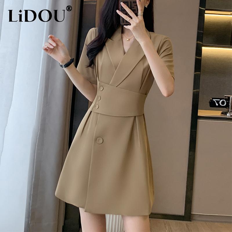 Летнее новое элегантное модное платье с талией для офисной леди, женское платье с коротким рукавом, темпераментное однотонное платье, праздничные платья, женская одежда — купить товар онлайн с бесплатной доставкой по всему миру!