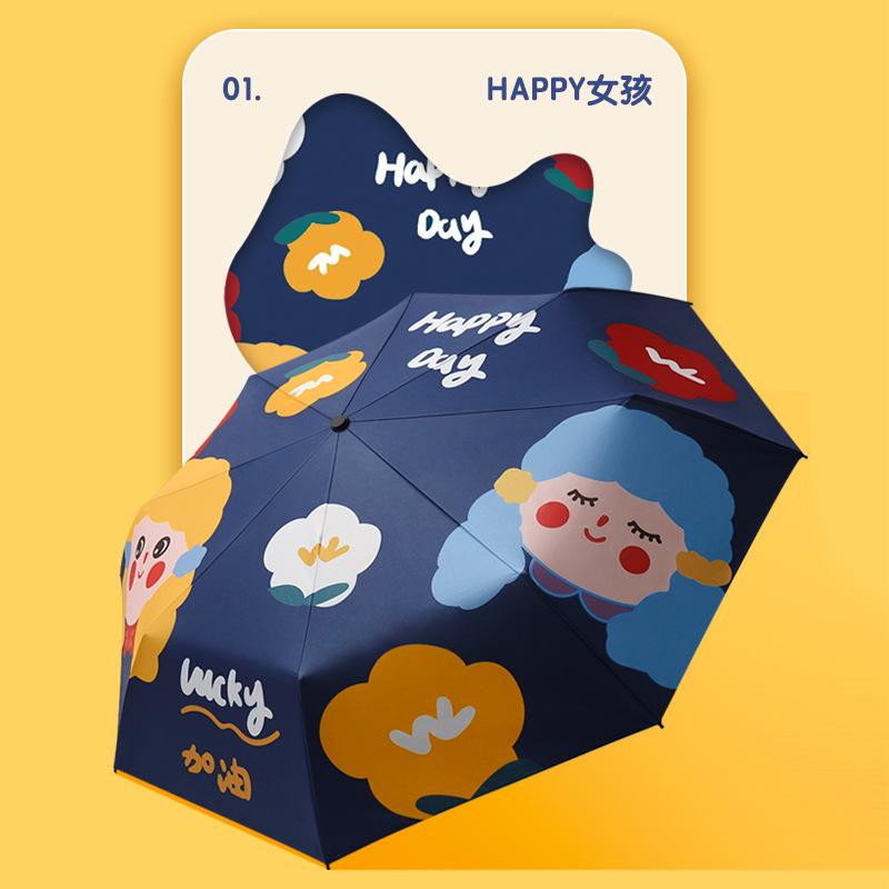 Трехслойный ручной маленький свежий погодный и дождевой зонт складной цифровой виниловый солнцезащитный зонт