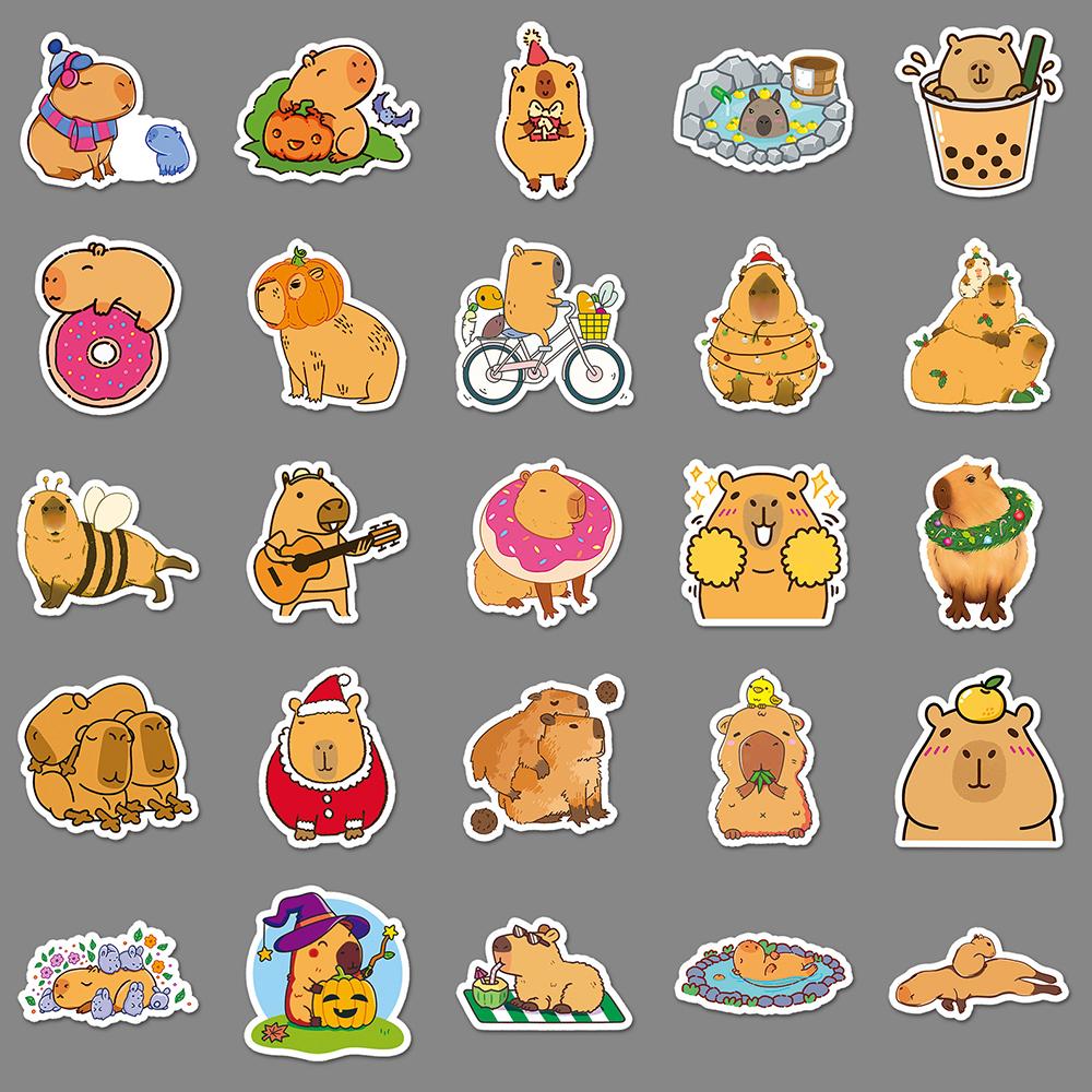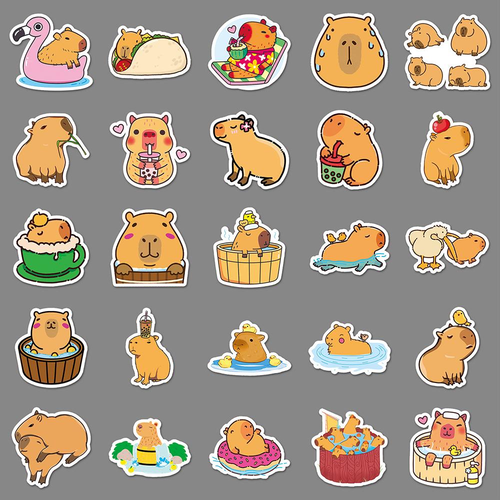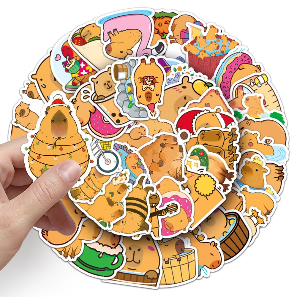 50 шт. милых наклеек Capybara для бутылок с водой, ноутбука, гитары, багажа, велосипеда