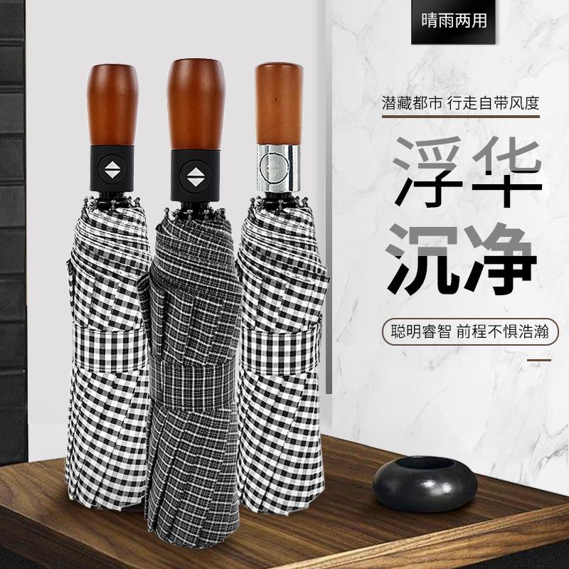 Десятиспицевой ветрозащитный зонт, трехсекционный автоматический зонт, складной зонт с полосками из массива дерева