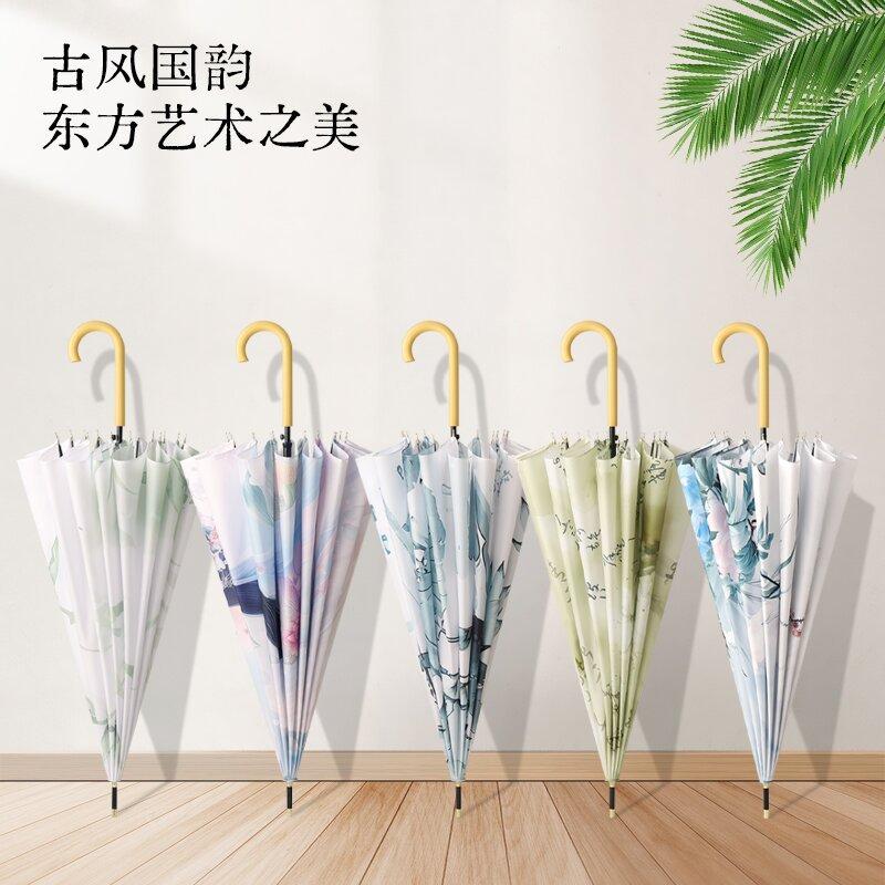 2025 новый зонт с 16 спицами на прямом стержне, антикварный зонт с изогнутой деревянной ручкой «Гоюнь», длинный зонт