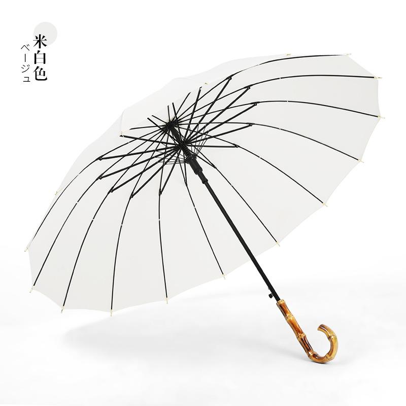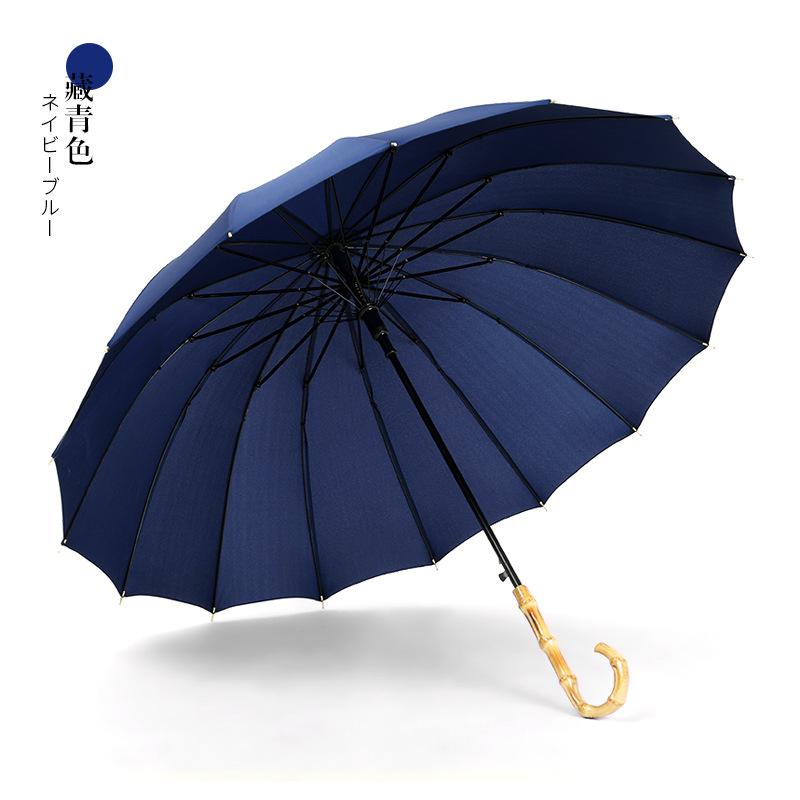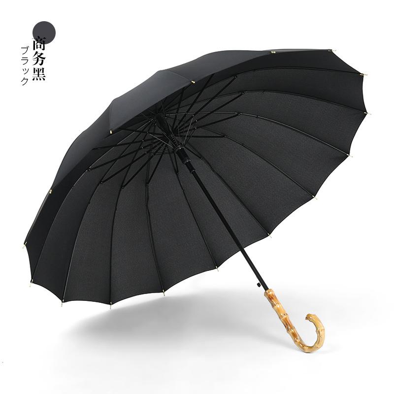 Зонт с прямым стержнем из стального каркаса 16K, однотонный, с длинной бамбуковой ручкой, для улицы
