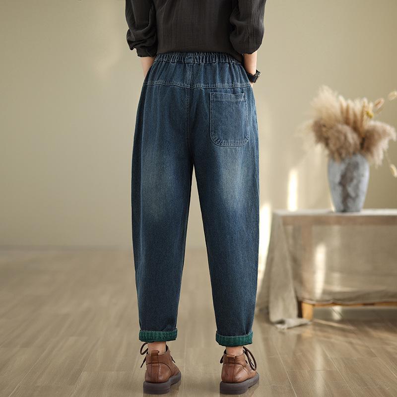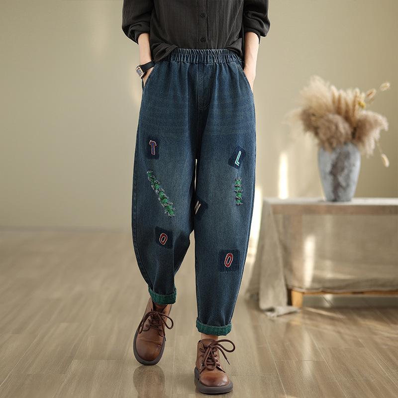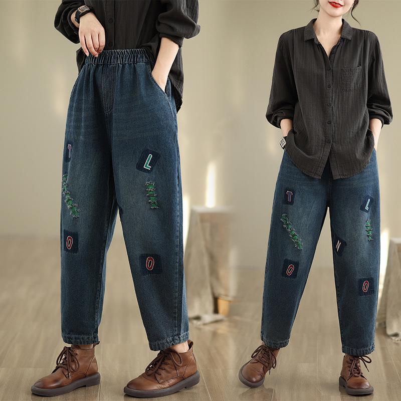 Литературная вышивка Брюки гарем Джинсы Весна Свободные На каждый день Похудение Брюки-морковь Женские