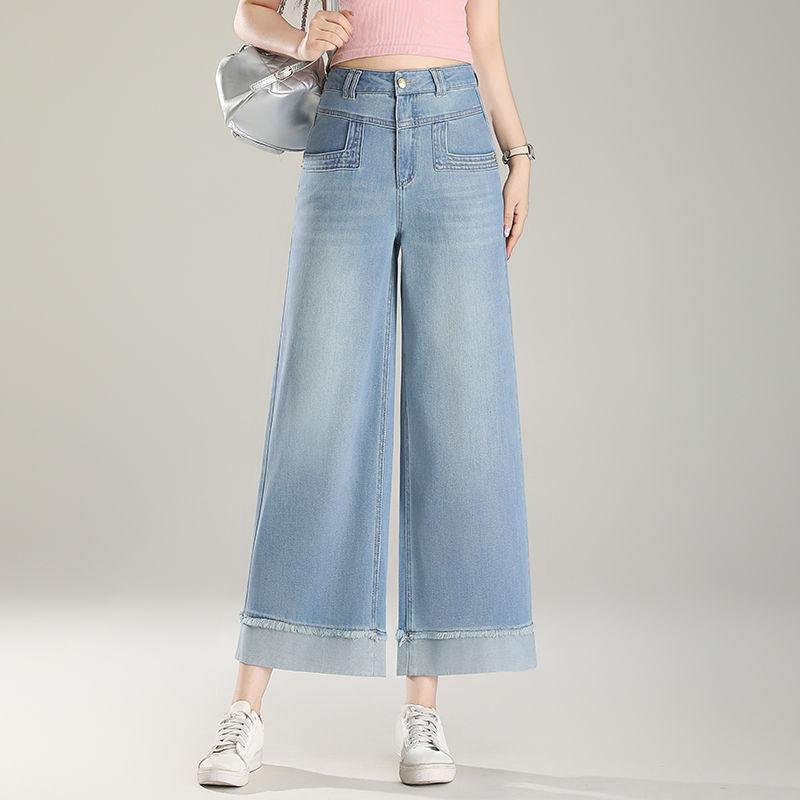 Женские джинсы прямого кроя летние тонкие с высокой посадкой укороченные брюки узкие широкие брюки
