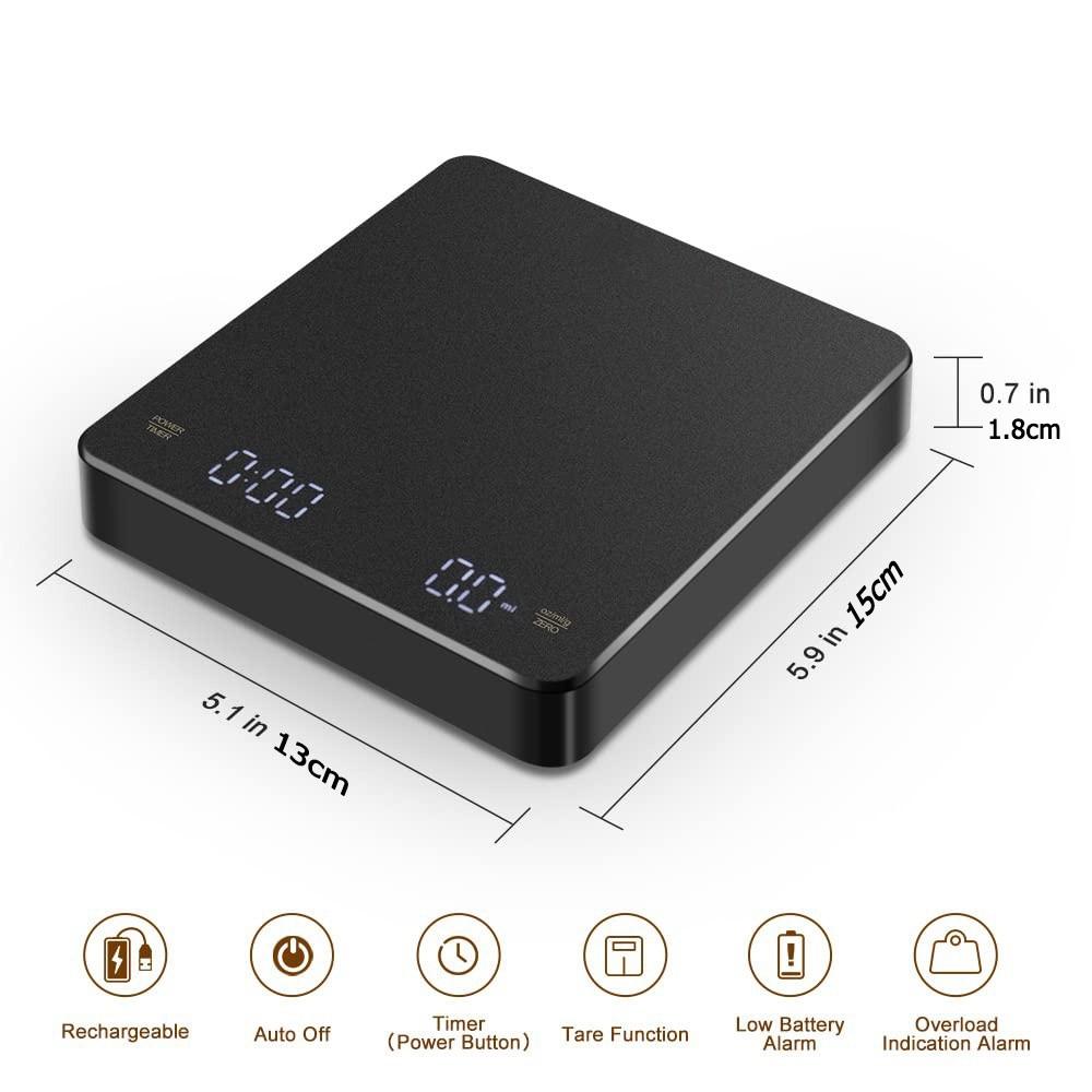 Электронные весы Перезаряжаемые кофейные весы 0,1 г-3 кг Точные весы для эспрессо и кофе, приготовленного методом пуровер Кухонные весы