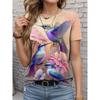 Summer Bird Pattern 3D Digital Print Women's Plus Size Fashionable Short Sleeved T-shirt