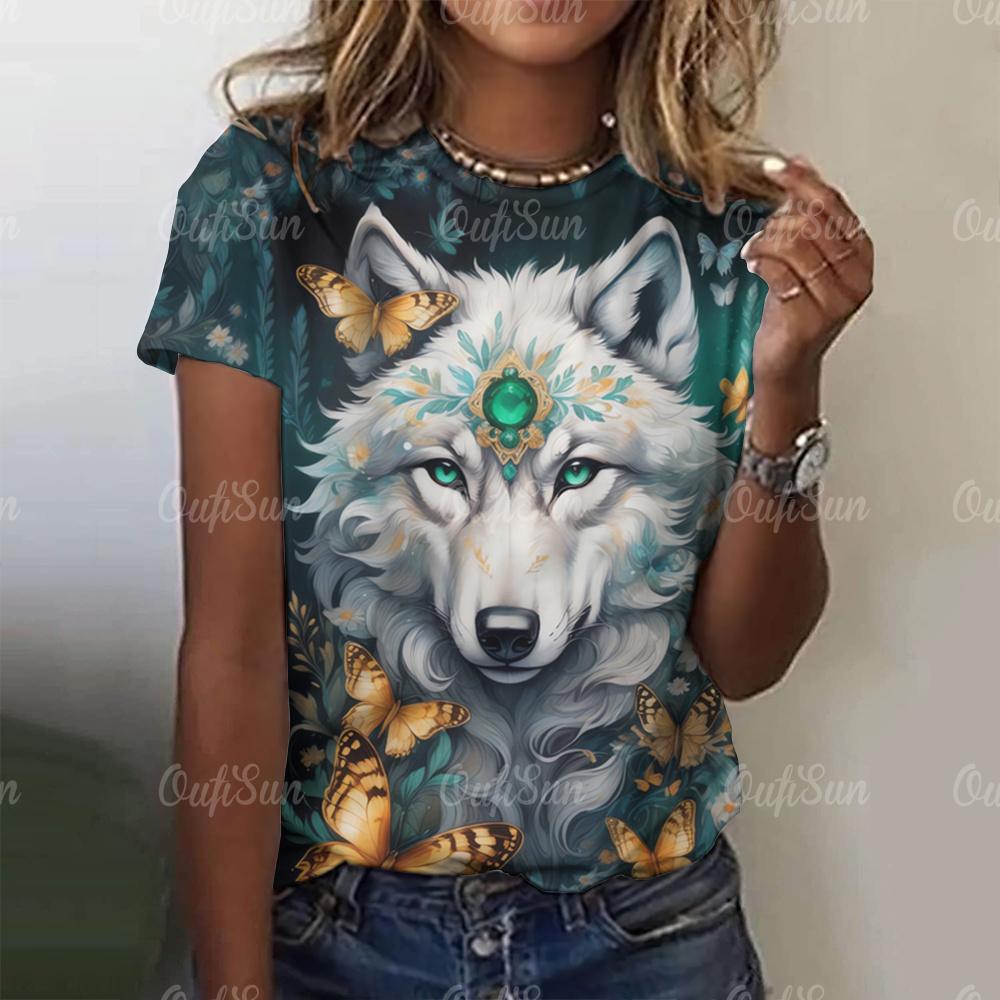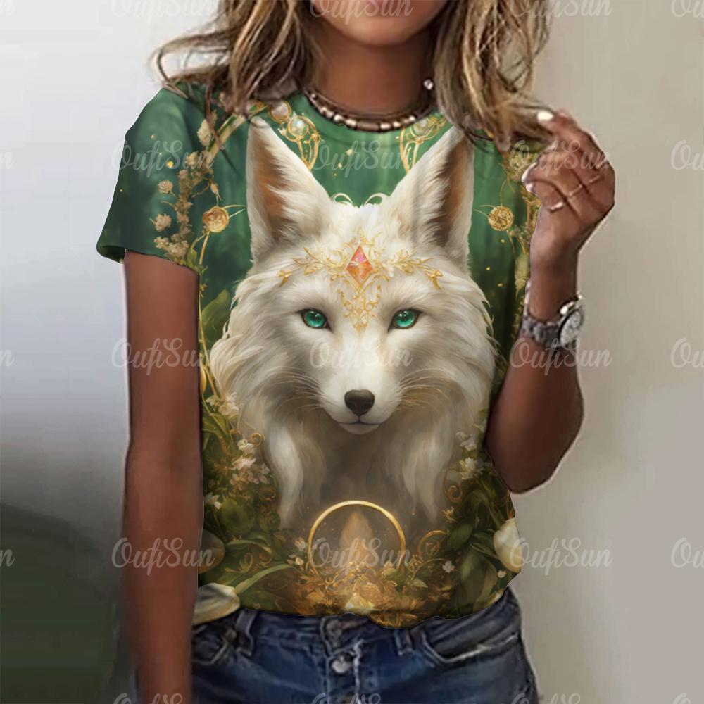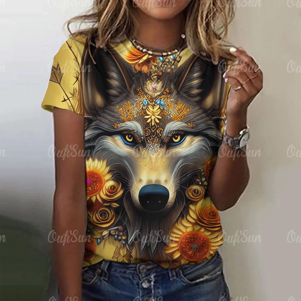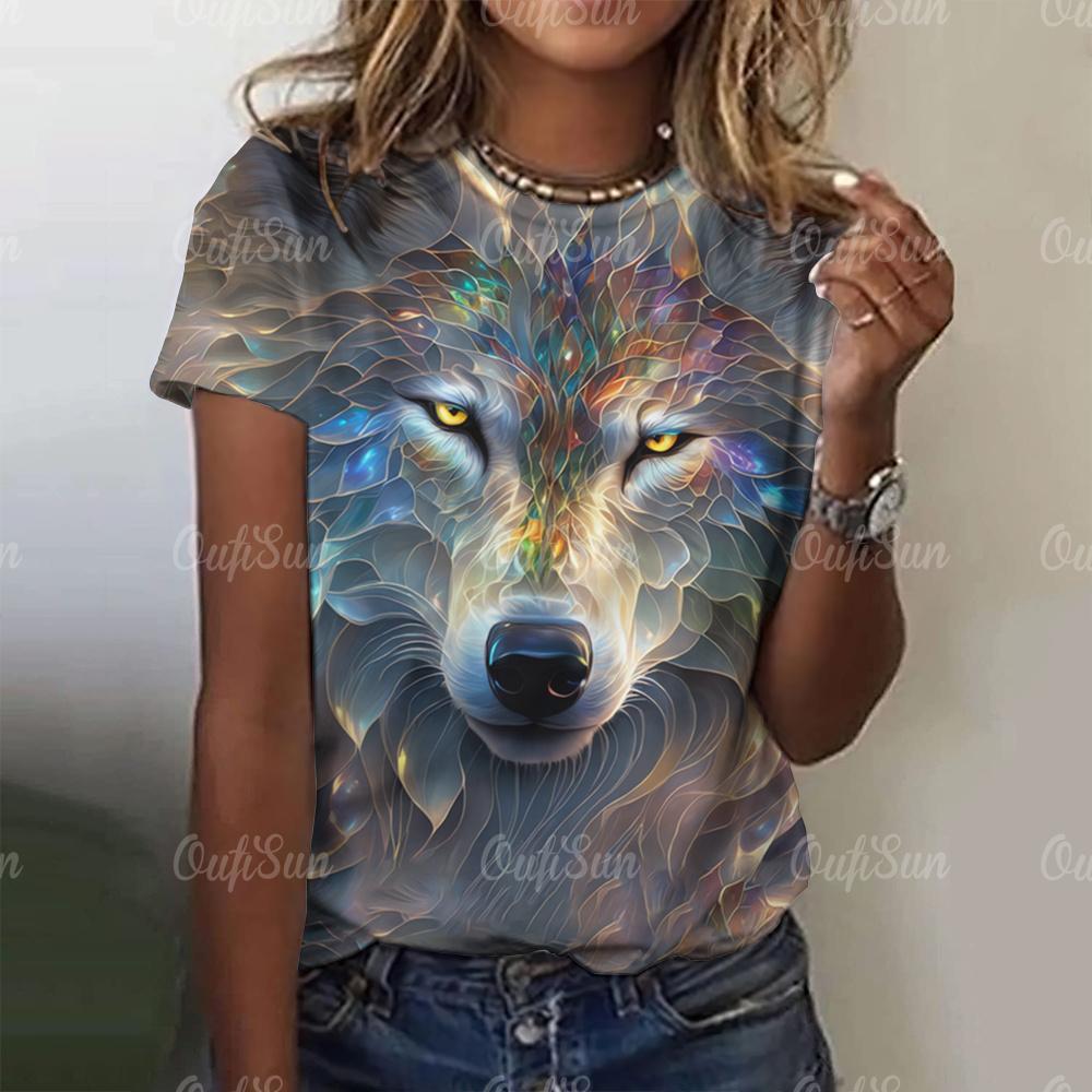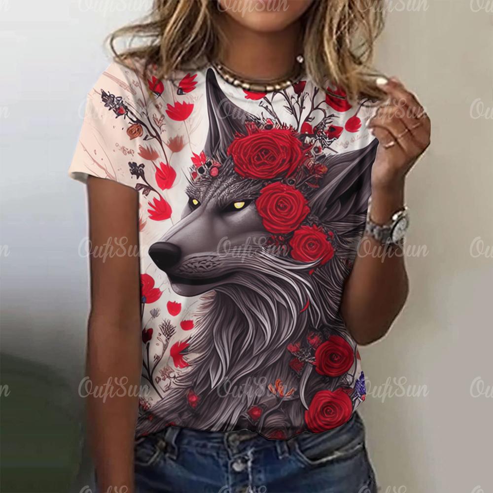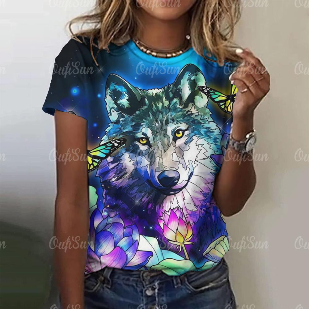 Летний топ с круглым вырезом и принтом 3D волка, модные повседневные женские футболки с короткими рукавами