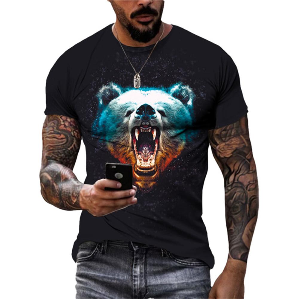Летние Новые Футболки с Животным Медведем для Мужчин Модные Повседневные Личностные Хип-Хоп Харадзюку Уличная Одежда 3D Принтом Короткий Рукав Футболки Топы