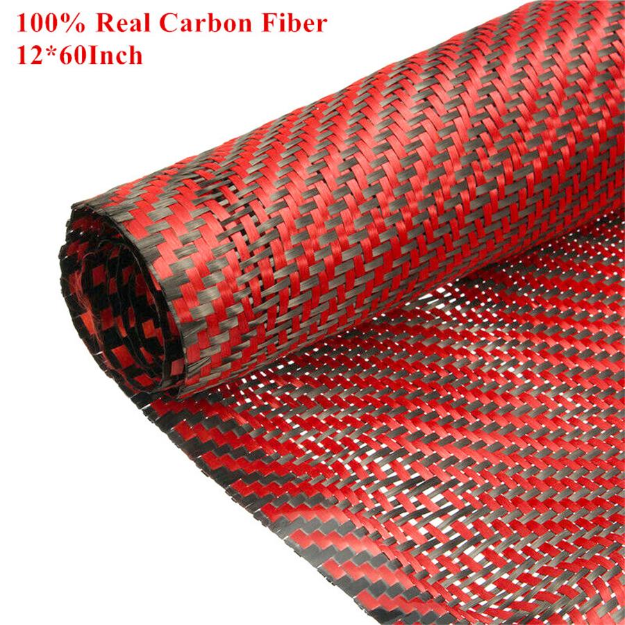 Ткань из углеродного волокна 12" x 60" 3K 2x2 саржевого плетения 220 г/м² Черный и красный