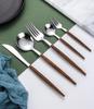 Набор столовых приборов 5 шт./набор серебристый золотой деревянная ручка нержавеющая сталь нож вилка ложка ужин при свечах нож вилка ложка посуда