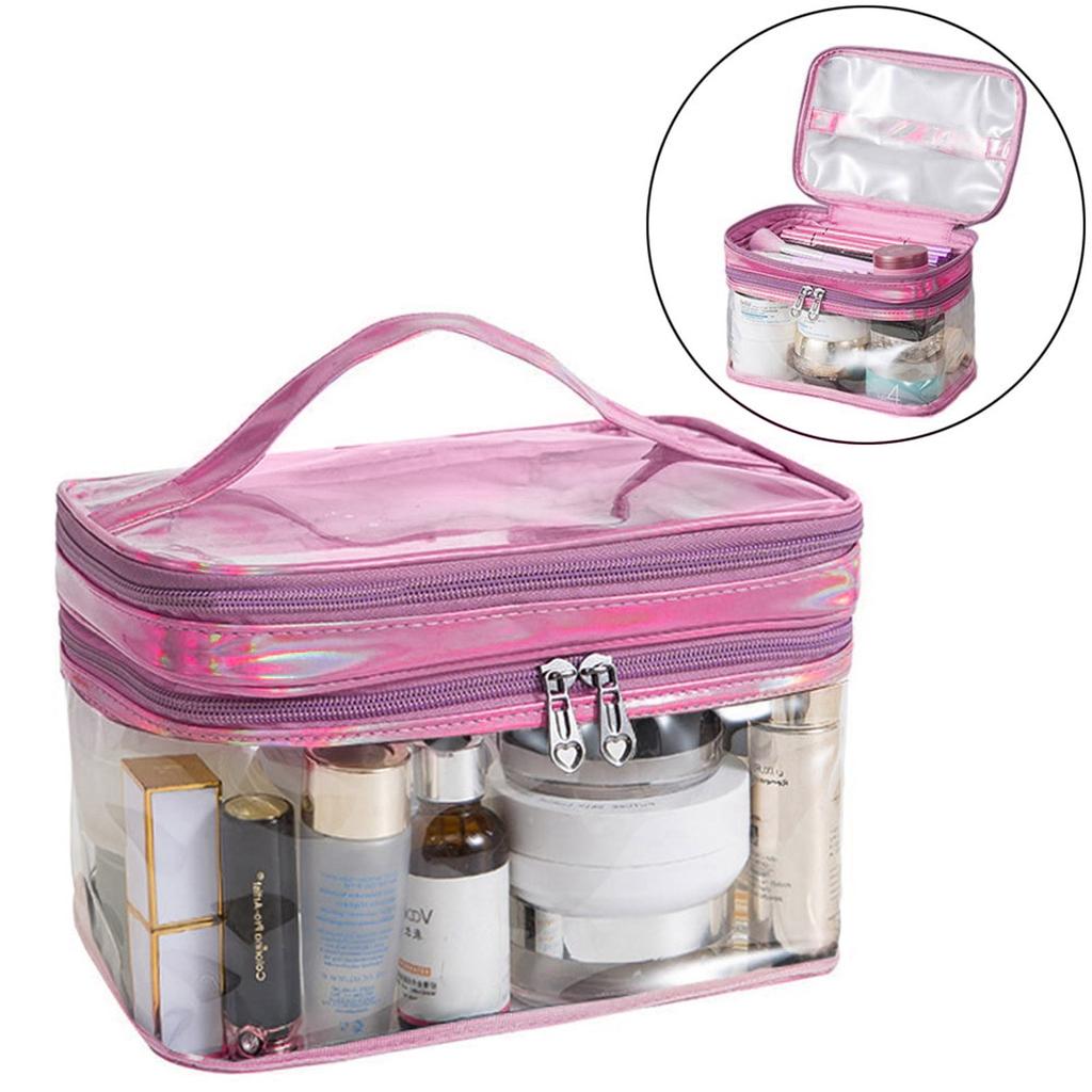 Прозрачная косметичка Двухслойная прозрачная пластиковая косметичка на молнии Дорожная косметичка