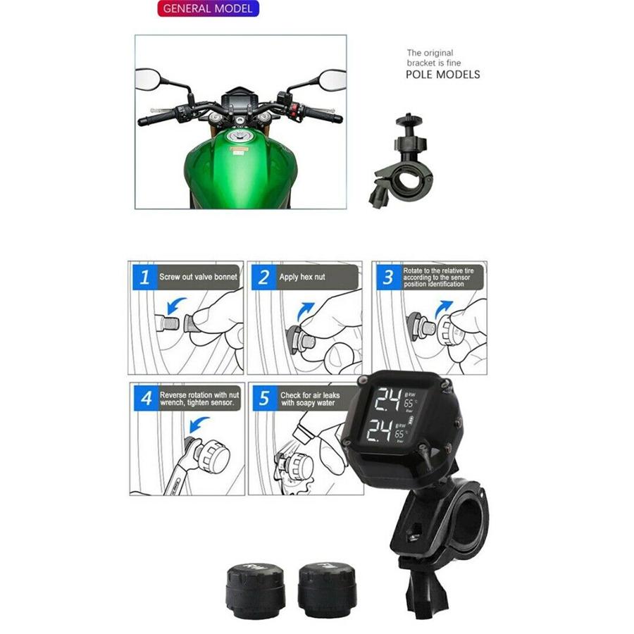 Отображение в режиме реального времени высокоточных данных о температуре и давлении в шинах 2 колес одновременно.
