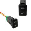 В этом объявлении представлен один комплект спецификаций 33 мм x 21 мм 12 В двухцветный двойной кнопочный переключатель с световой панелью/противотуманной фарой, светодиодной подсветкой фона, совместимый с Toyota и Scion для противотуманных фар, ДХО, светодиодной световой панели и т. д.