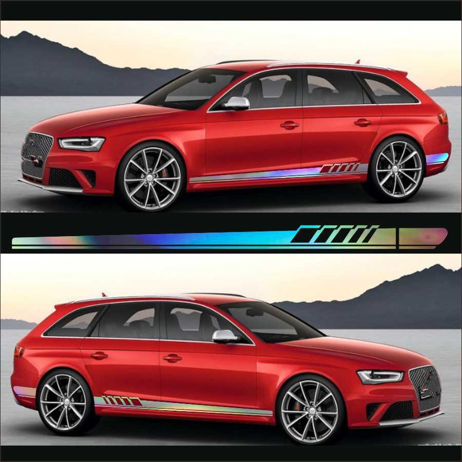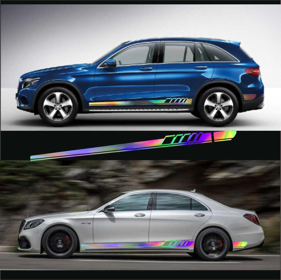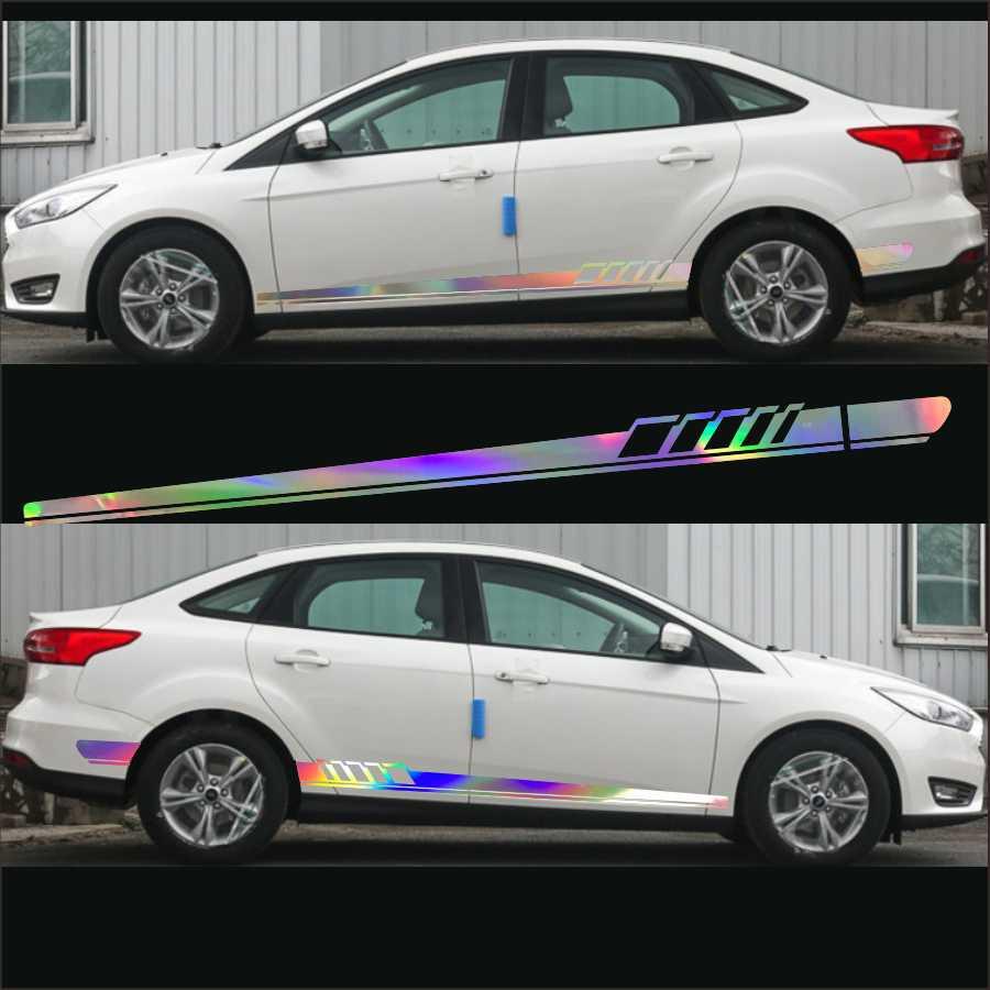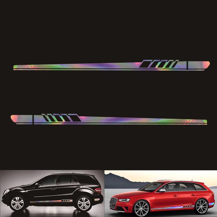 2 шт. Лазерные светоотражающие наклейки на кузов автомобиля, виниловые наклейки для обеих сторон кузова, спортивные гоночные наклейки для гоночных автомобилей, длинные полосы.