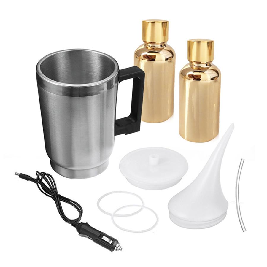 2, конец шнура питания в основание чашки, другой конец в гнездо прикуривателя, красный свет для начала нагрева.