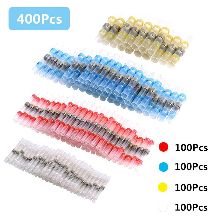 Водонепроницаемый паяльный наконечник термоусадочный соединитель для сращивания проводов 26-10 AWG Синий Красный Желтый Белый 400 шт.