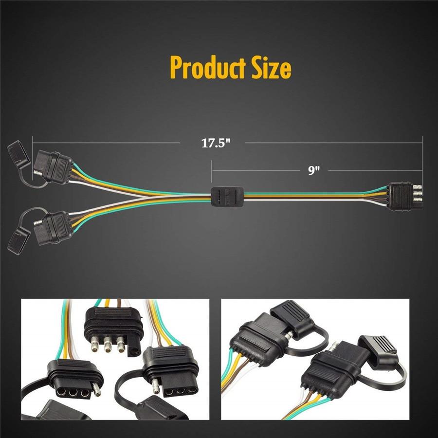 2 ШТ. Плоский 4-контактный 4-контактный Y-образный разветвитель для прицепа, адаптер, светодиодная световая панель для задней двери для пикапа, прицепа