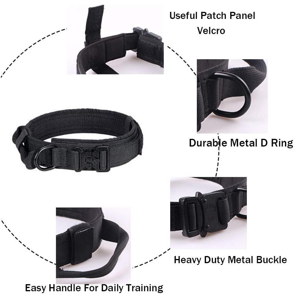 Новый тактический набор ошейника и поводка для собаки с ручкой для контроля и металлической пряжкой (черный)