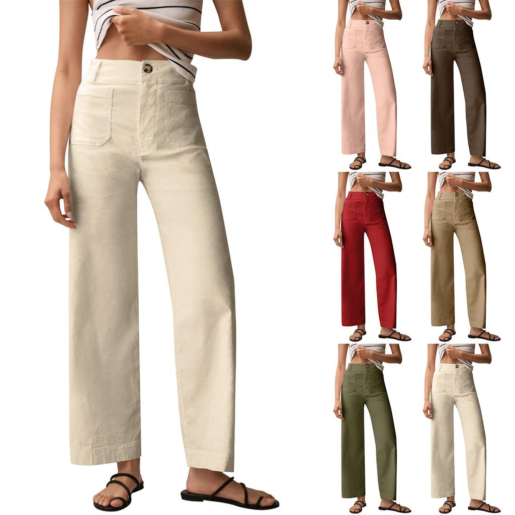 Женские однотонные повседневные широкие брюки с девятью точками и карманами