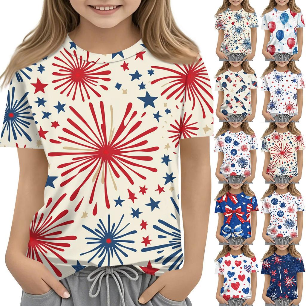 Детская модная повседневная футболка с коротким рукавом и принтом «День независимости» с круглым вырезом — купить товар онлайн с бесплатной доставкой по всему миру!