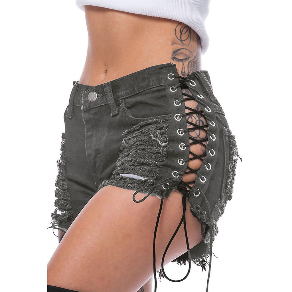 Женские сексуальные брюки, рваные, сексуальные, уличные, низкие джинсовые шорты, брюки с завязками по бокам, джинсовые шорты