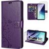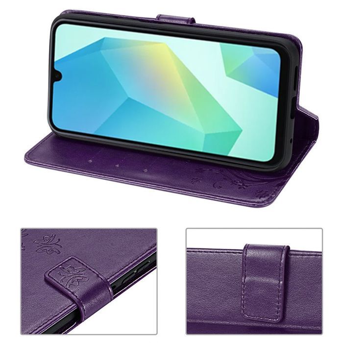 Чехол для Samsung Galaxy A16 4G/5G - BOOLING - Искусственная кожа с художественным цветочным рельефом темно-фиолетового цвета - 2 закаленных стекла