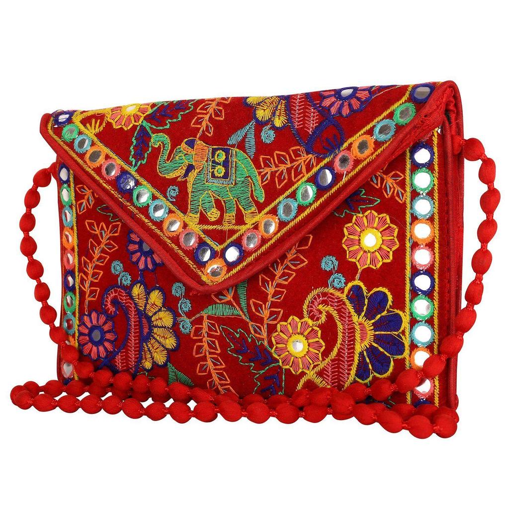 Клатчи Ручная вышивка Зеркальная работа Стильные сумки-слинг для женщин Сумки через плечо для дам и девушек - 22X16 см