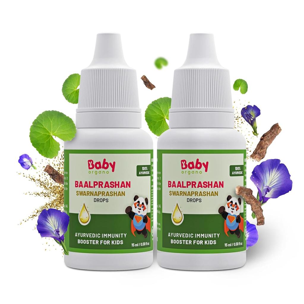 Babyorgano Сварнапрашан Капли для детей - Суварнапрашан Усилитель иммунитета Обогащенный, Здоровый рост и Сила - 15 мл, Возраст 0-15 лет (Упаковка из 2 шт.)