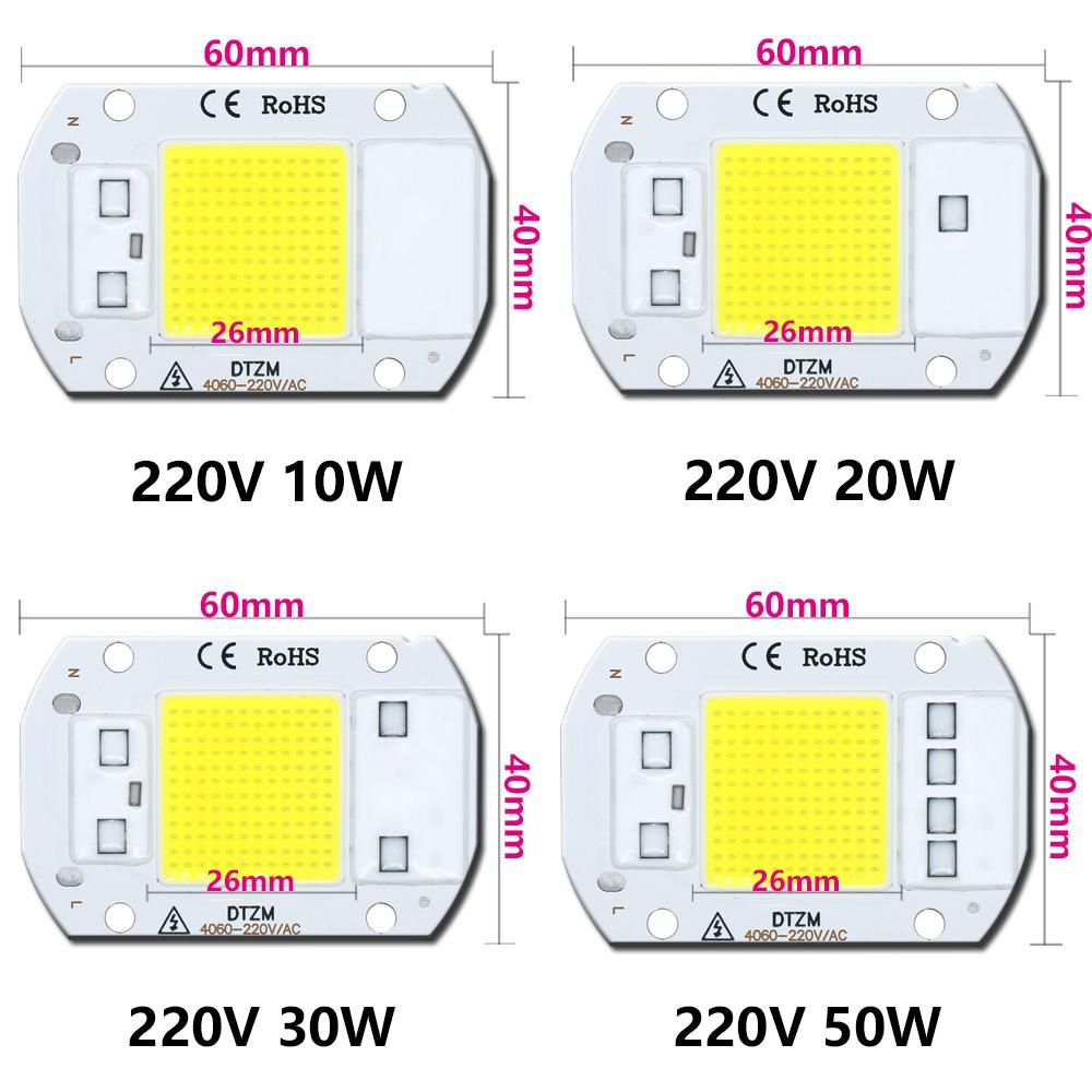 Светодиодный чип COB 50 Вт светодиодная лампа Высокомощный светодиод 220 В 10 Вт 20 Вт 30 Вт 5 Вт лампочки Лампа 220 В Светодиодная матрица Для Наружного прожектора точечного света