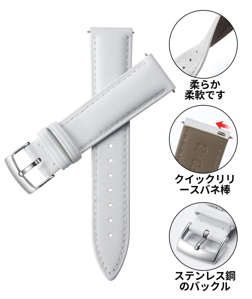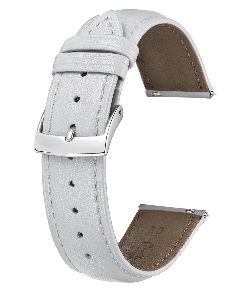 Кожаный ремешок для часов, быстросъемный кожаный ремешок для часов, многоцветный ремешок для часов, стильный сменный ремешок, мягкий, дышащий, унисекс [BINLUN] (20мм, Белый)