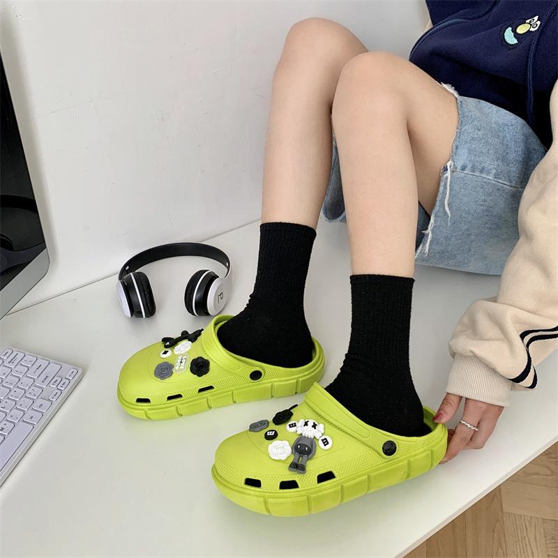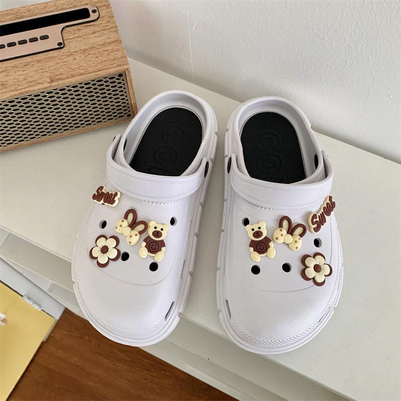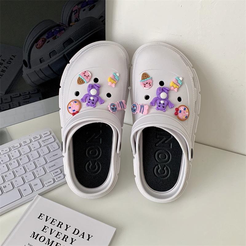 Туфли с дырочками женские 2025 новые женские туфли на платформе-маффине пляжные студенческие с закрытым носком сандалии