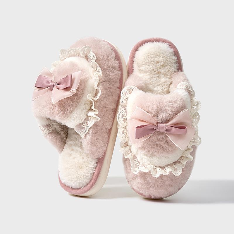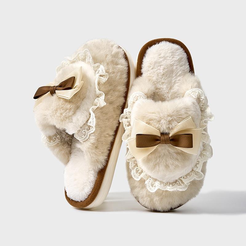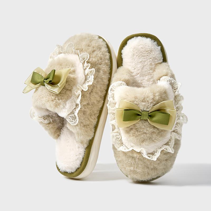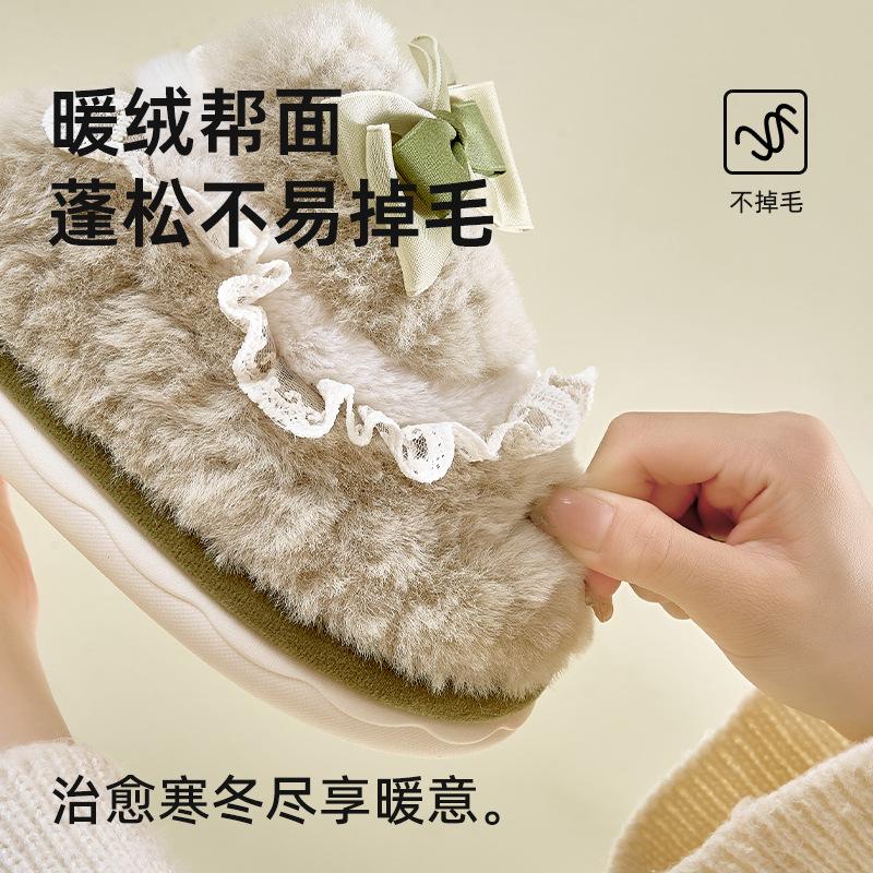 Любовь бант плюшевые тапочки 2025 осень и зима новый дом теплые толстые нескользящие хлопковые тапочки пара