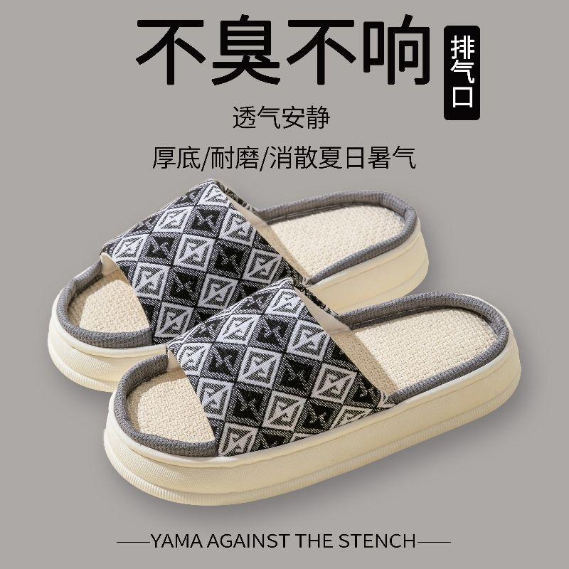 Домашние льняные тапочки женские весенне-осенние четырехсезонные комнатные хлопково-льняные толстоподошвенные домашние домашние нескользящие летние мужские