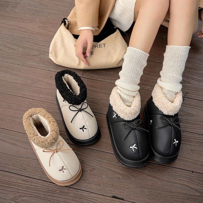 Кожаные водонепроницаемые зимние ботинки верхняя одежда теплые бархатные тапочки для дома нескользящие с высокой толстой подошвой хлопковые тапочки