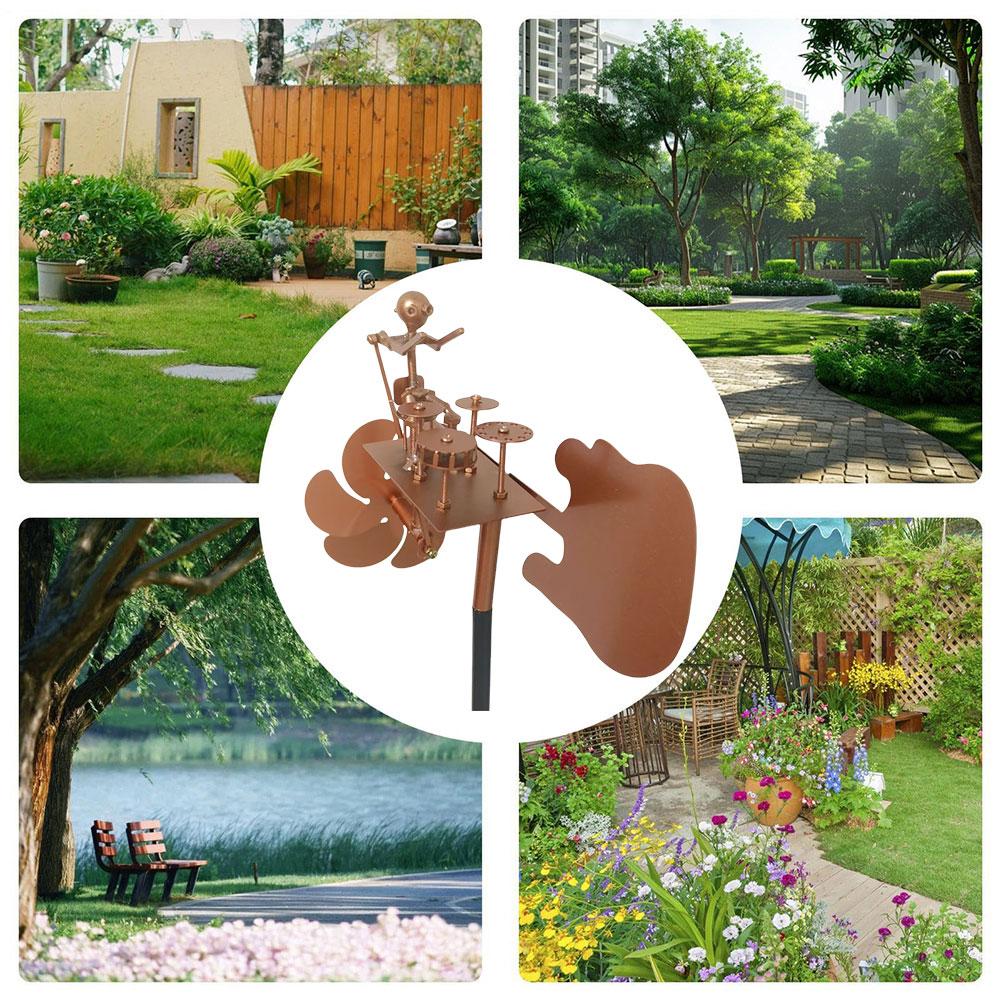 1-3 шт. Металлический ветряк Металлический барабанщик Ветряная мельница Статуя Рок-перкуссионист Музыкальное искусство Статуя для дворового искусства Декор для газона и сада