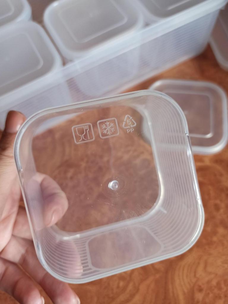 Набор контейнеров Замечательный набор! Делаю на работу с собой салатик каждый день, маленького контейнера как раз хватает. Использую для сухого молока также на работу, для мёда. Очень нравится. Контейнеры можно использовать в морозилке. Качество хорошее, без запаха. Пластик не тонкий, не сгибается. Закрывается не герметично. Поэтому лучше не переворачивать.