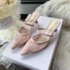 Универсальные крутые тапочки 2025 лето новинка кружево дышащие остроносые сумка голова полутапочки женские носят на высоком каблуке крутые тапочки