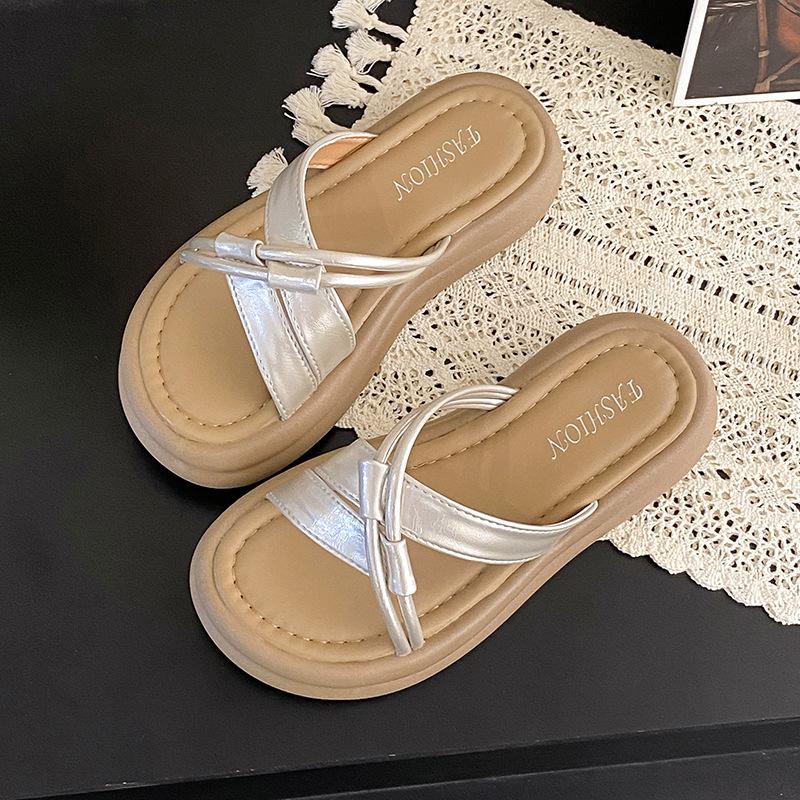 Крутые тапочки женские летние 2025 новая мода универсальные с юбкой толстая подошва нескользящие пляжные шлепанцы