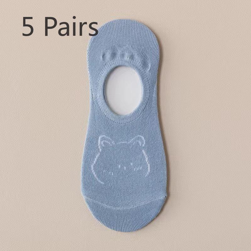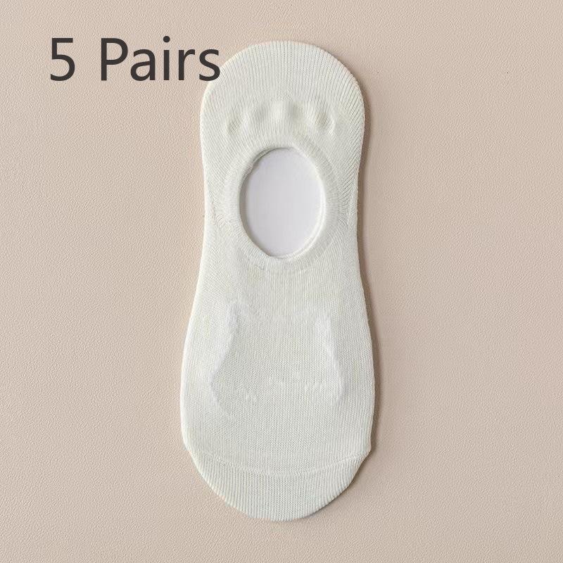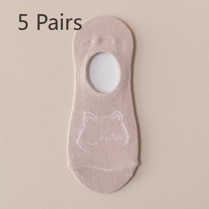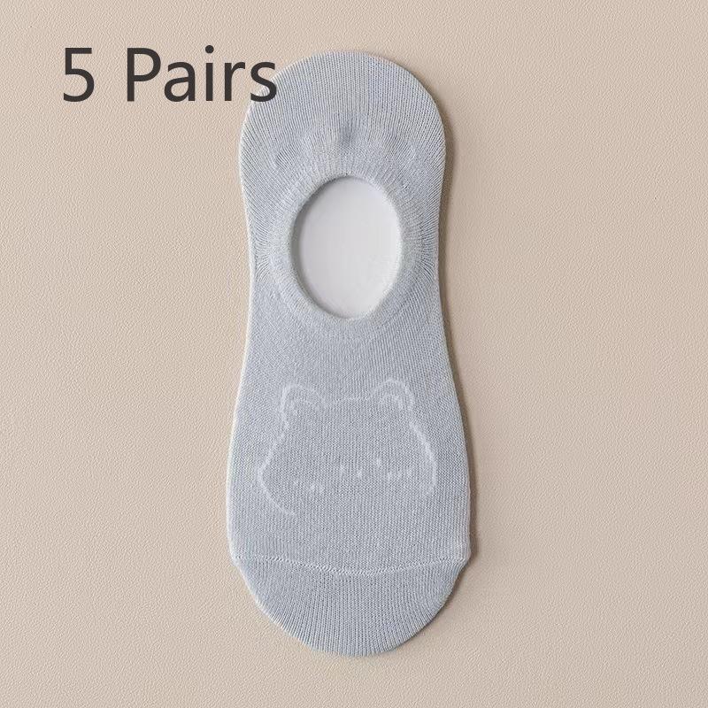 5 пар женских нескользящих носков-лодочек, летние тонкие и модные неглубокие нескользящие силиконовые носки-невидимки с мультяшным медведем
