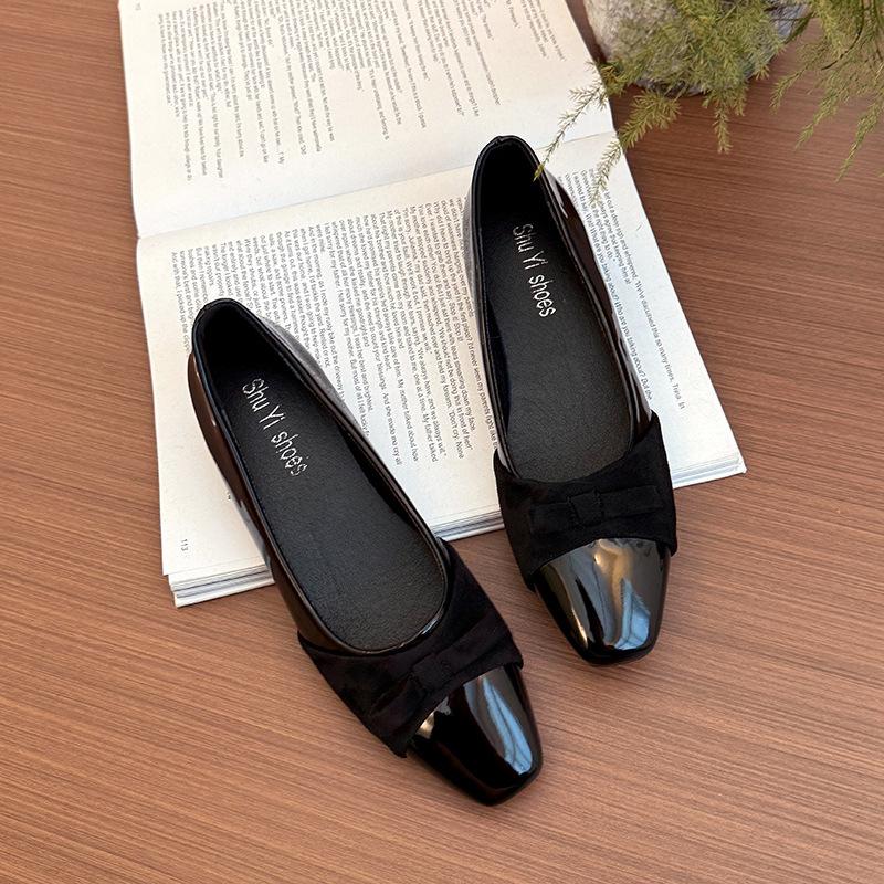 Туфли-лодочки на толстом каблуке из лакированной кожи с бантом, с открытым вырезом, квадратным носком, с низким каблуком, нежные, красные, телесные