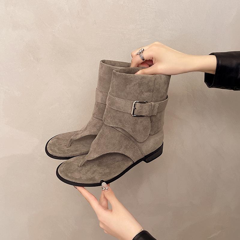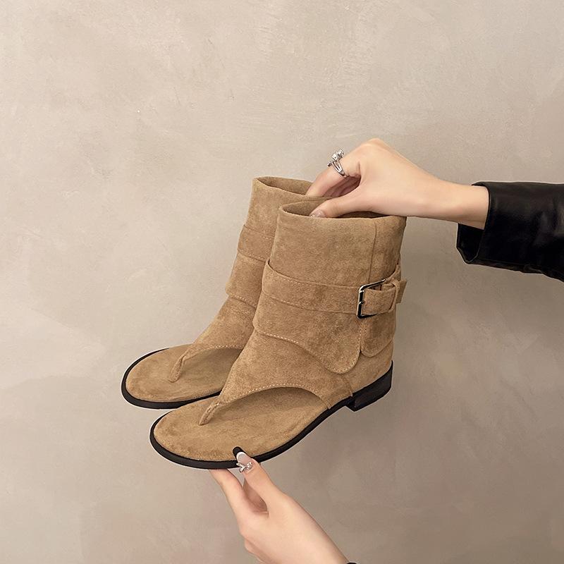 Босоножки на мезонине, женские новые крутые ботинки на плоской подошве летом 2025 года, брюки-рукава, короткие ботинки, крутые ботинки на плоской подошве в елочку.