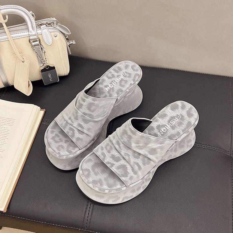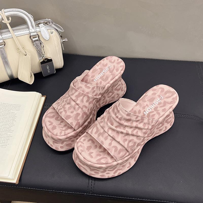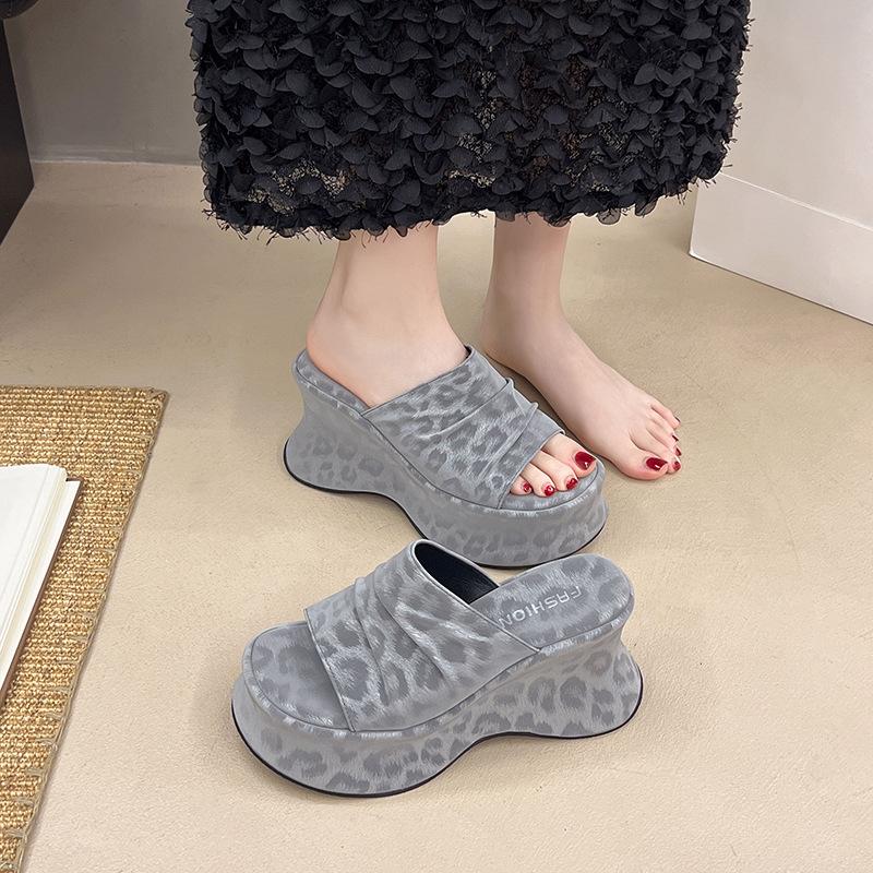Туфли на танкетке, на высокой толстой подошве, прозрачные шлепанцы на одно слово, женская обувь, носить 2025 лето, новая модная темпераментная крутая обувь