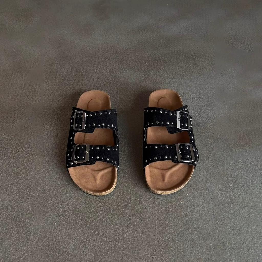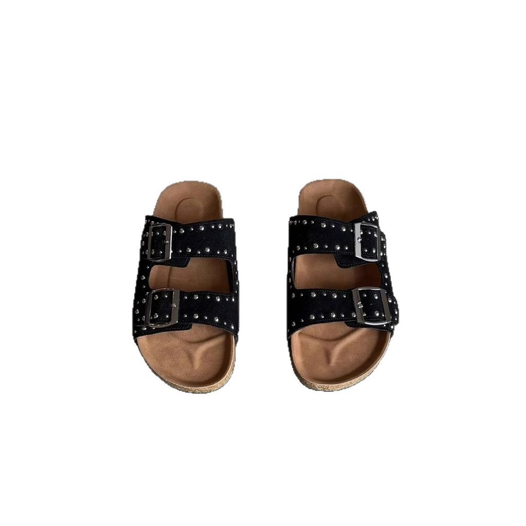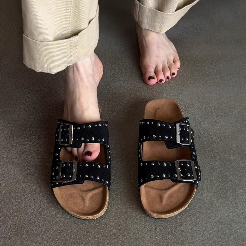Ретро шлепанцы на толстой подошве женские для улицы лето новая мода заклепки ремешок с пряжкой крутые шлепанцы