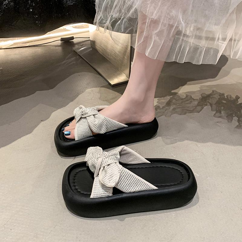 Шлепанцы на платформе, женская обувь, универсальные удобные сандалии с узлом, лето 2025, новинка, шлепанцы на одной перемычке