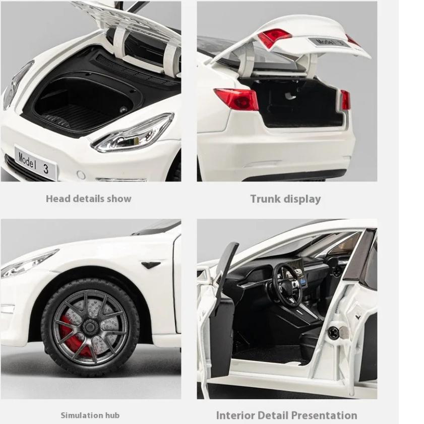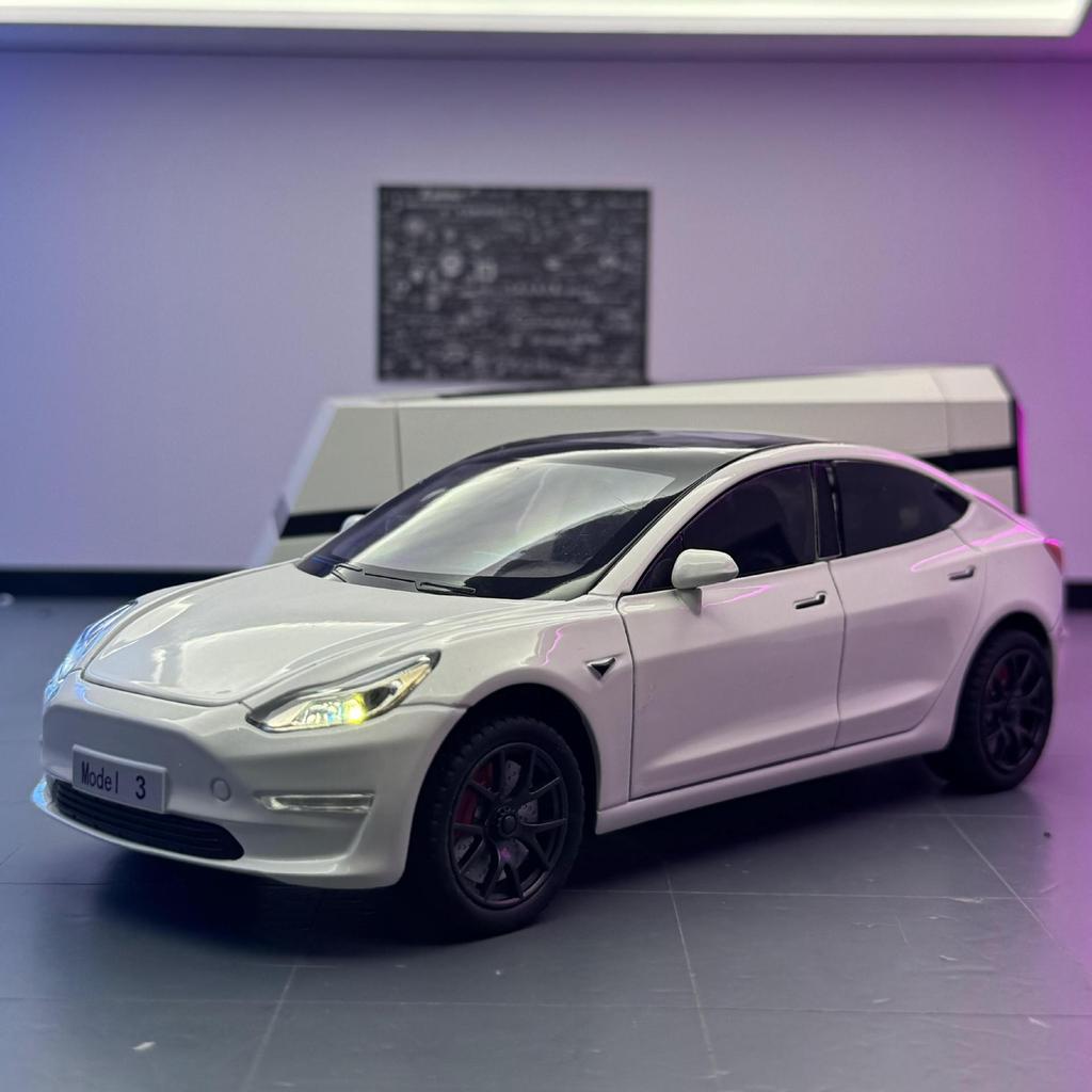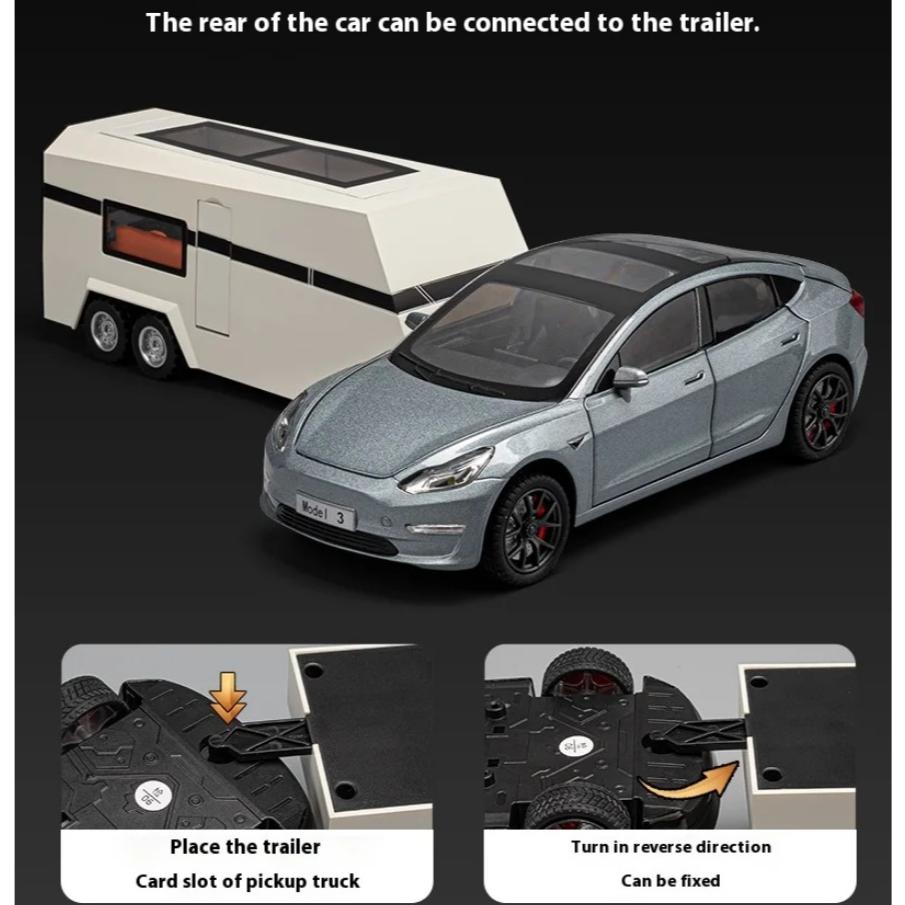 Модель Tesla Model3 в масштабе 1/24, сплав, буксировка дома на колесах, открывающиеся двери, украшения для детских звуковых и световых игрушек, для подарков мальчикам