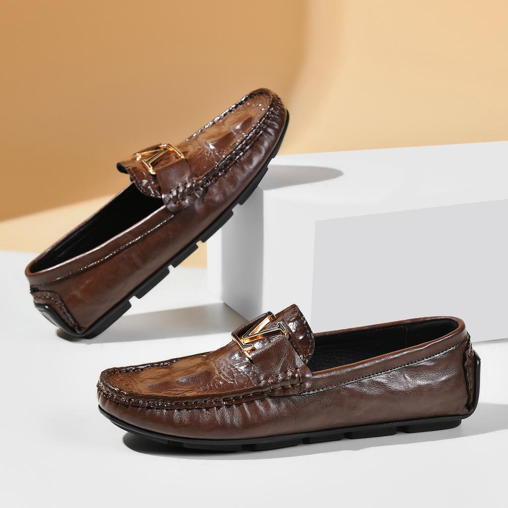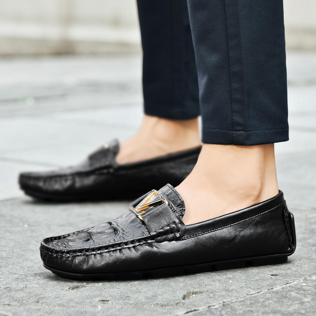 Живые ботинки-бини с крокодиловым узором, ленивые туфли для вождения, британская повседневная мужская кожаная обувь, натуральная кожа, воловья кожа