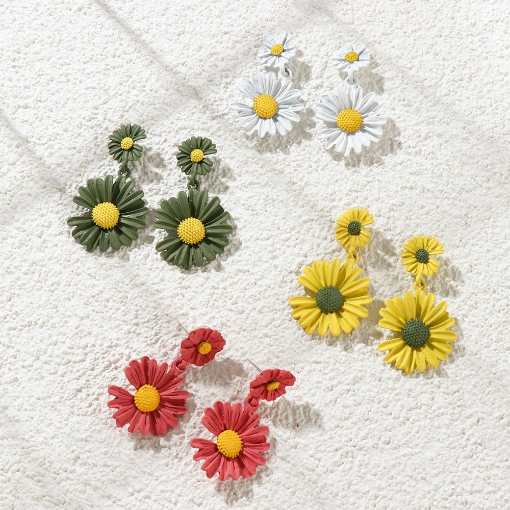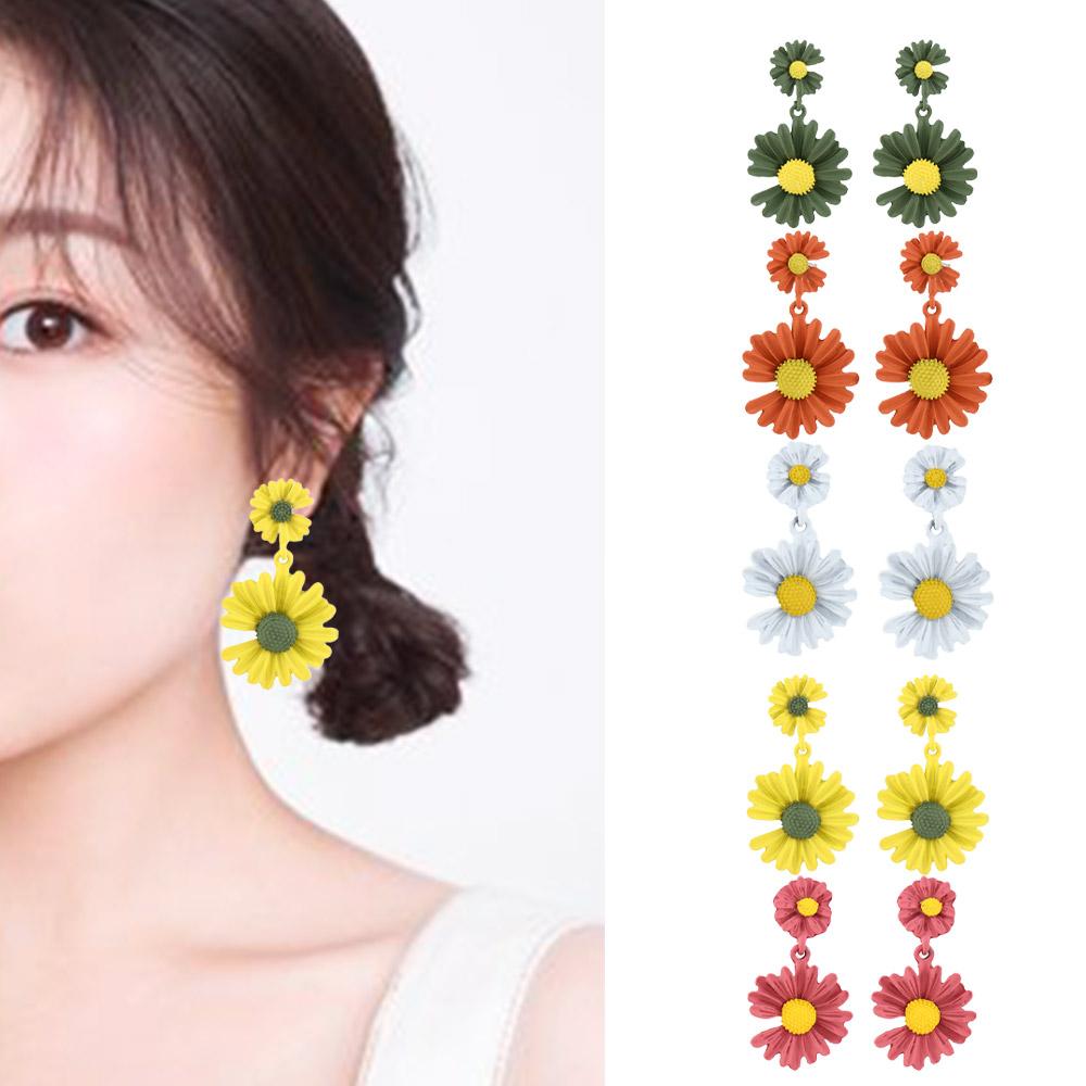 Женские милые серьги-гвоздики с цветком, летняя модная бижутерия, серьги-подвески с маргаритками