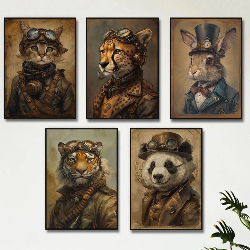 Стимпанк Животные Гепард Панда Кролик Тигр Кошка Холст Картина Скандинавские Постеры Принт Настенное Искусство для Гостиной Домашний Декор — купить товар онлайн с бесплатной доставкой по всему миру!